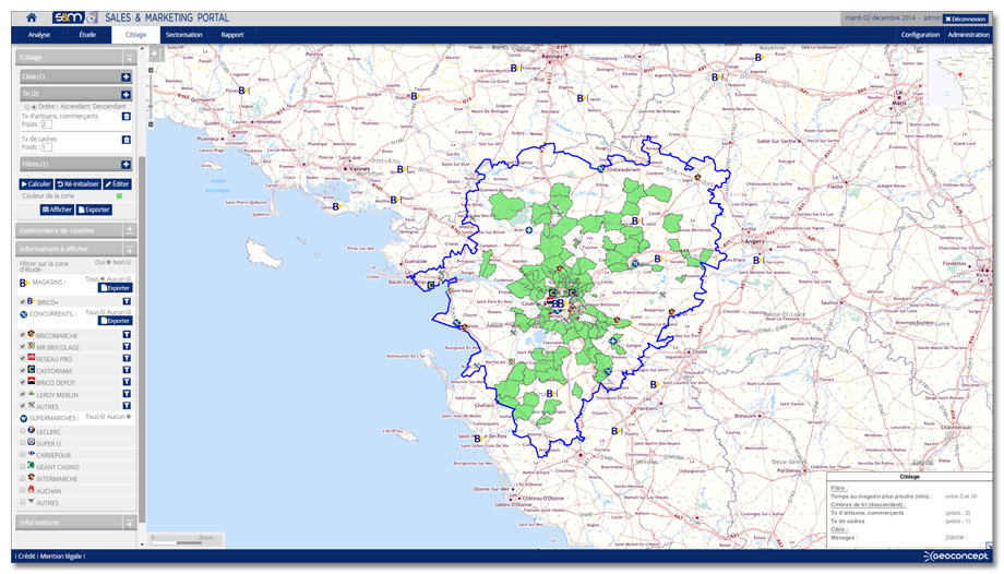 Geoconcept Sales & Marketing Portal 2.1 includes a new Targeting module allowing users to identify just in few clicks territories which are defined as a priority for prospecting and marketing targeting.