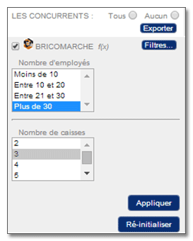 To better analyze its networks and the competitive environment, the user can now refine the selection of points of interest included in a map (store, competition’s point of sales…). Thanks to multiple filters, he can easily display entities based on their number of employees, their number of cash registers… The result of its multiple queries can be exported with a click.