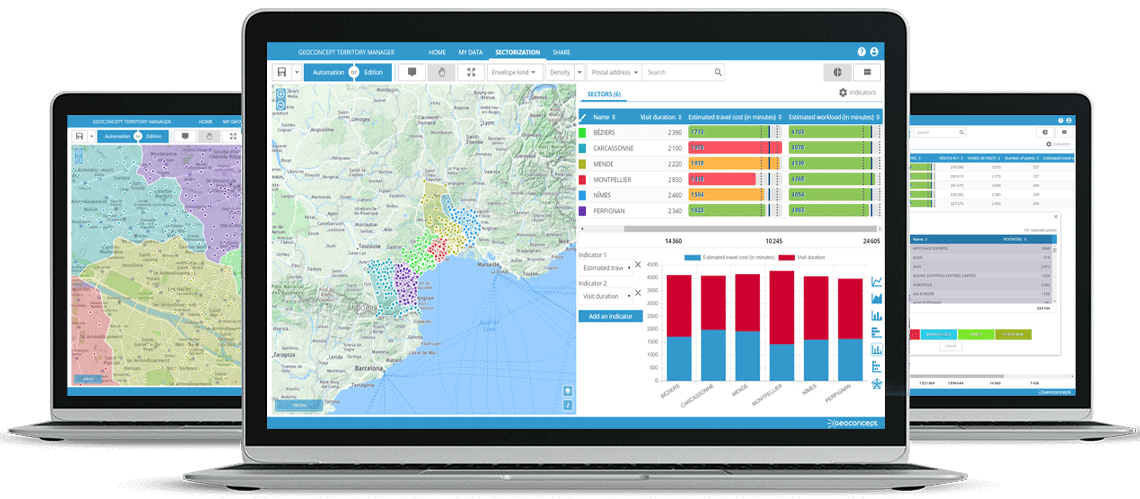 Territory management entails the fair apportionment of points between several geographical areas based on appropriate criteria for the activity in question: balancing of accounts between sales personnel based on potential turnover, apportionment of delivery areas around warehouses, assignment of customers requiring assistance taking account of the technicians’ expertise.