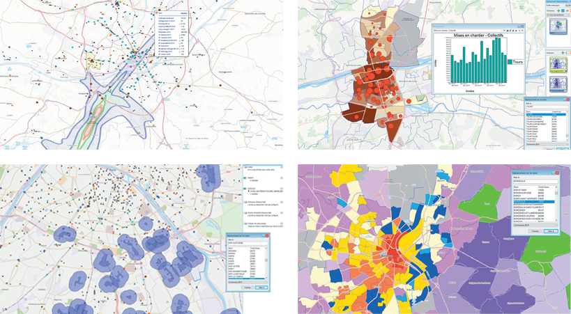 Geoconcept Sales & Marketing enables the points of interest to be cross-referenced with the socio-demographic data of INSEE (French national institute for statistical and economic studies), and business intelligence within a unique tool. It provides a comprehensive overview of all relevant decision-making data.