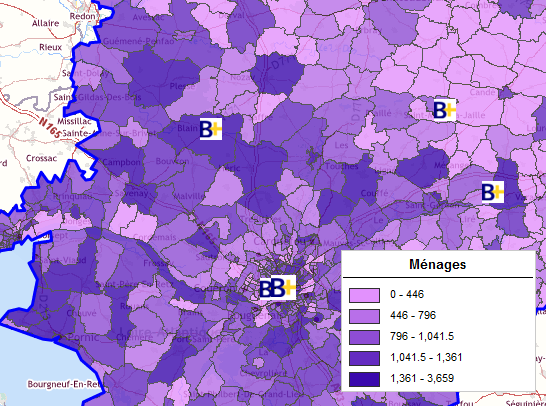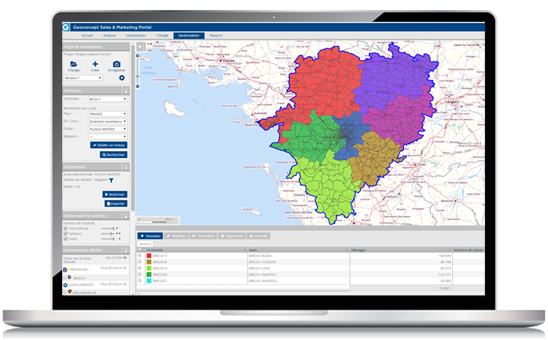 The users are guided when conducting studies: analysing territory potential, simulating a new site, identifying priority areas for a marketing campaign, analysing a redistricting...